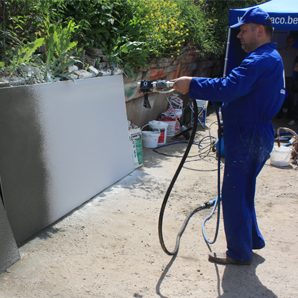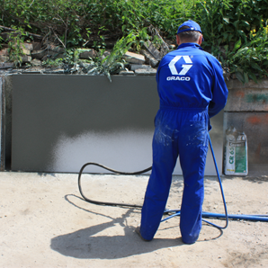 Демонстрация нанесения краски, структурной краски, шпатлёвки, гидроизоляции - окрасочными агрегатами фирмы "GRACO" - GH300., Mark IIV., Т-Max 657., X-Force., СТ-Max 395.