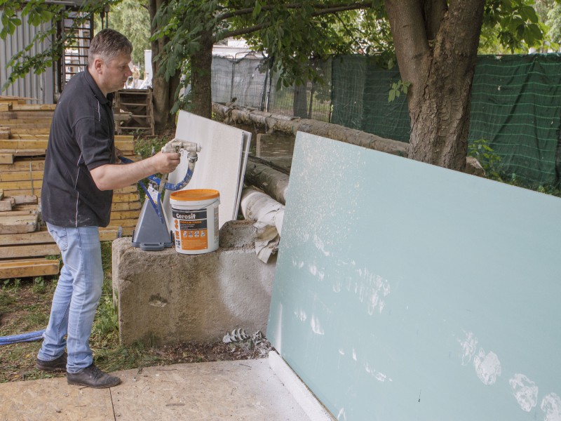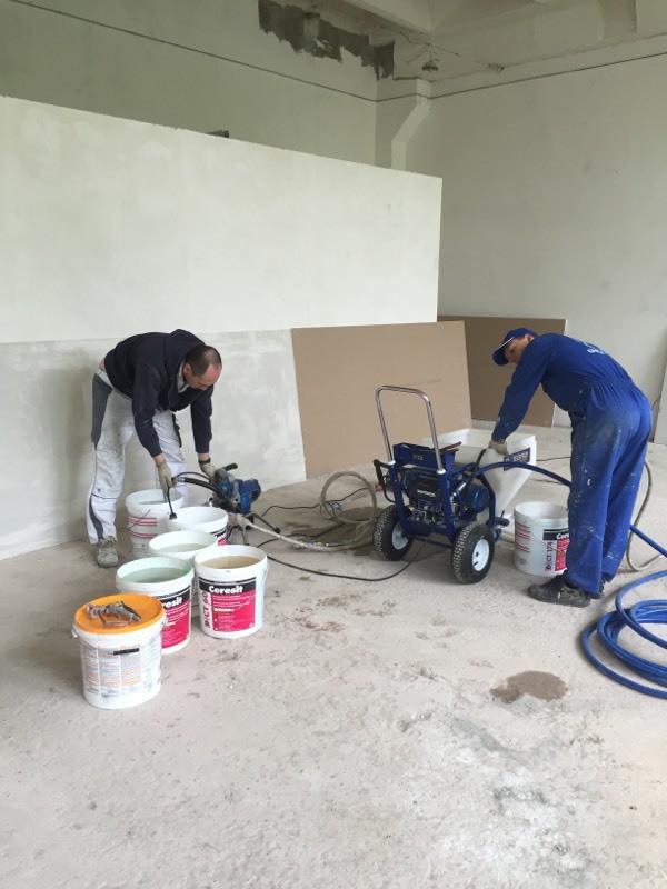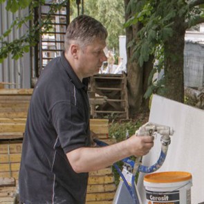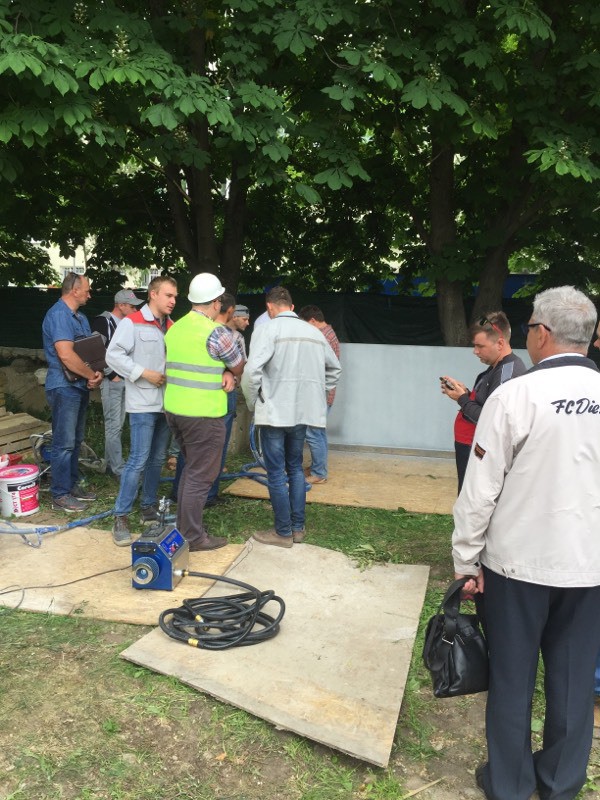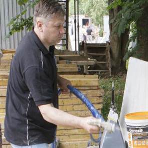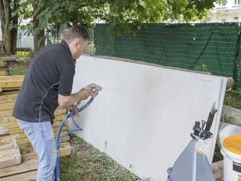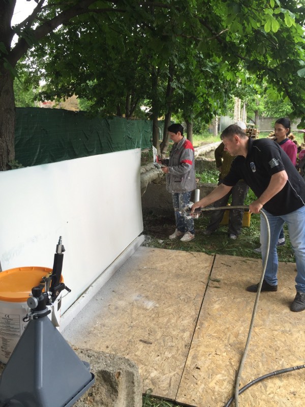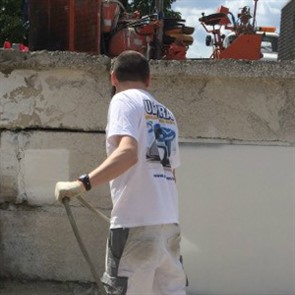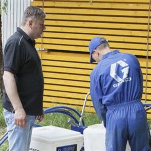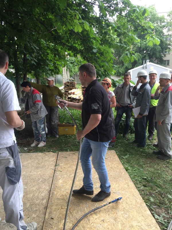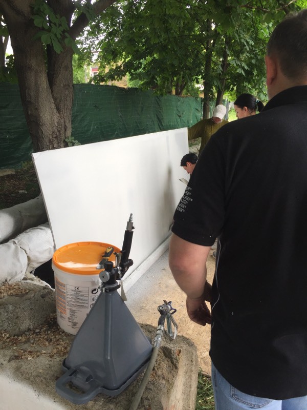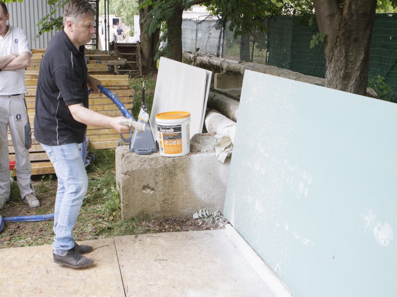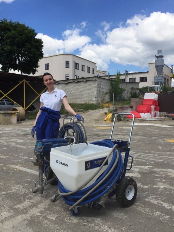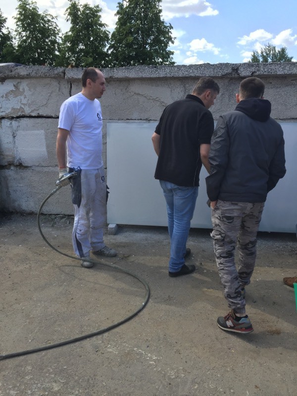Были представлены окрасочные агрегаты: GX21, КА190, Мark VII, АРХ 6200, RTX 5500, распылитель вязких материалов (хоппер). Были нанесены материаллы: шпатлёвка гипсовая СТ 126, шпатлёвка цементная СТ 34, шпатлевка полимерная IN 46, штукатурка камешковая СТ 174 (1,0), гидроизоляция пенополистерольная СР 1, краска акриловая СТ 42.
