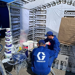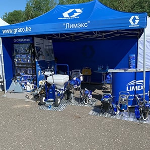 На нашем стенде была представлена широкая линейка окрасочных агрегатов компании «GRACO» (США) : RTX 2500, Mark X, Ultra Max 650, ST Max 395, ST Max 495, GX21, FFGX, KA290, T-Max 506, Мойка высока давления G-Force 4040, Распылитель турбина HVLP 9.5, а также много моделей ручных безвоздушных краскораспылителей, удлинителей, сопел, фильтров и т.д.