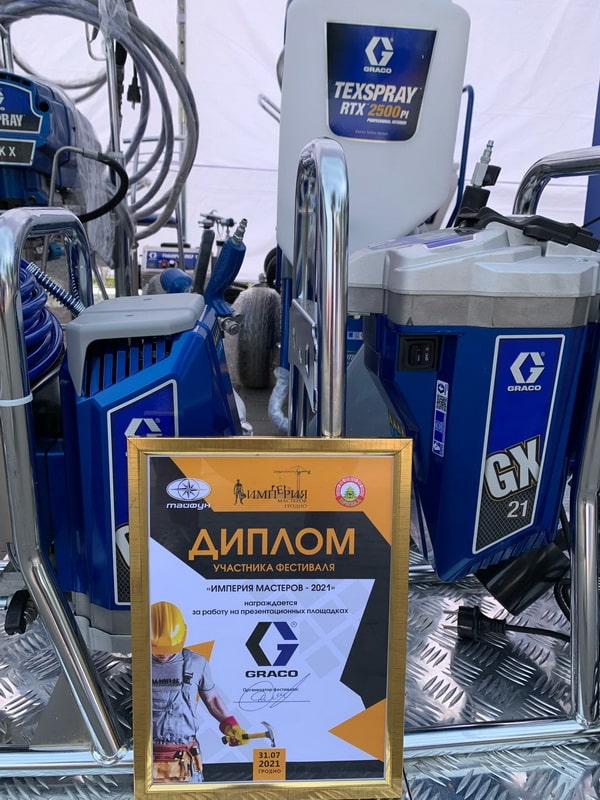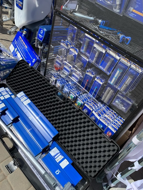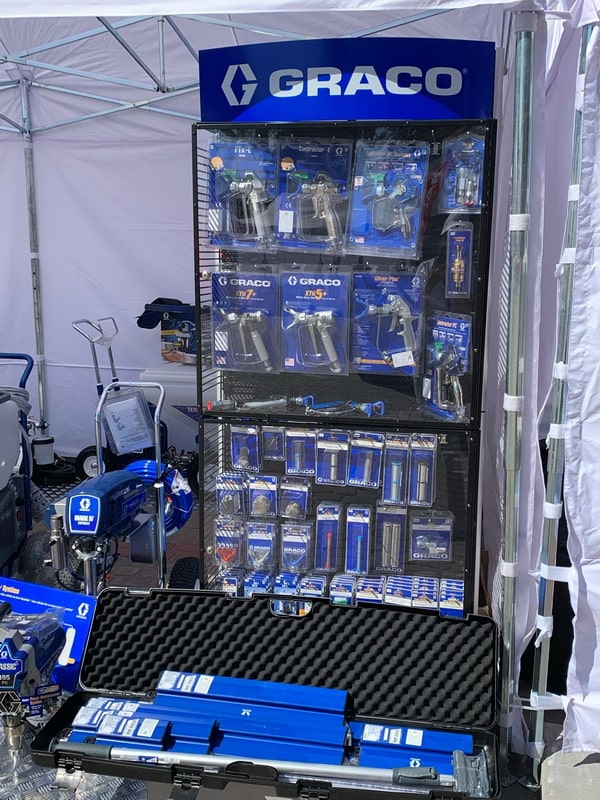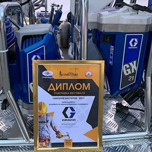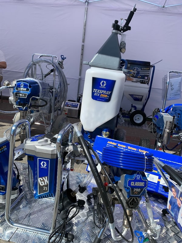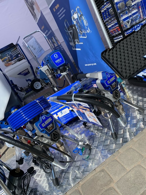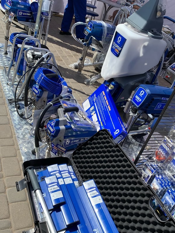 На нашем стенде была представлена широкая линейка окрасочных агрегатов компании «GRACO» (США): RTX 2500, Mark X, Ultra Max 650, ST Max 395, ST Max 495, GX21, FFGX, KA290, T-Max 506, Мойка высока давления G-Force 4040, Распылитель турбина HVLP 9.5, а также много моделей ручных безвоздушных краскораспылителей, удлинителей, сопел, фильтров и т.д.