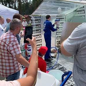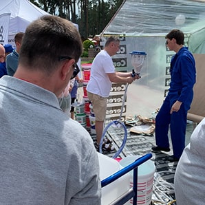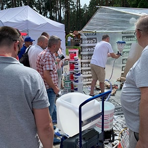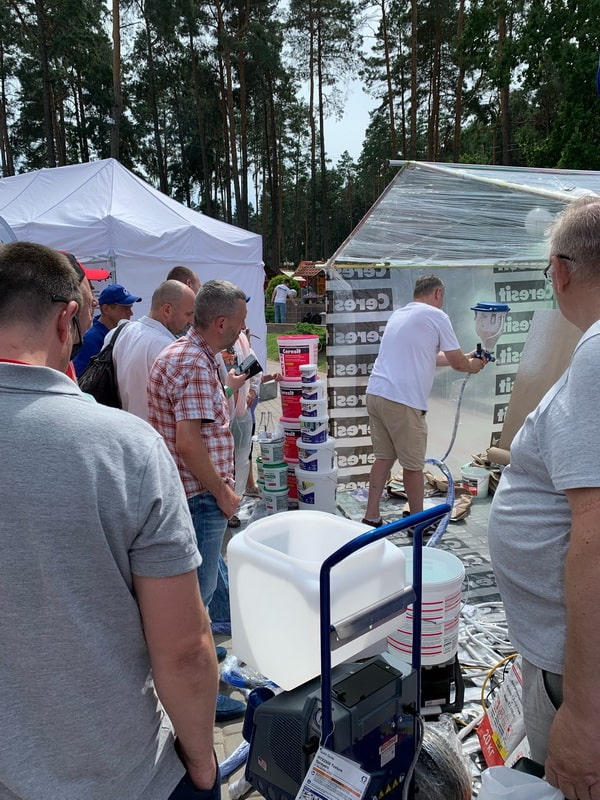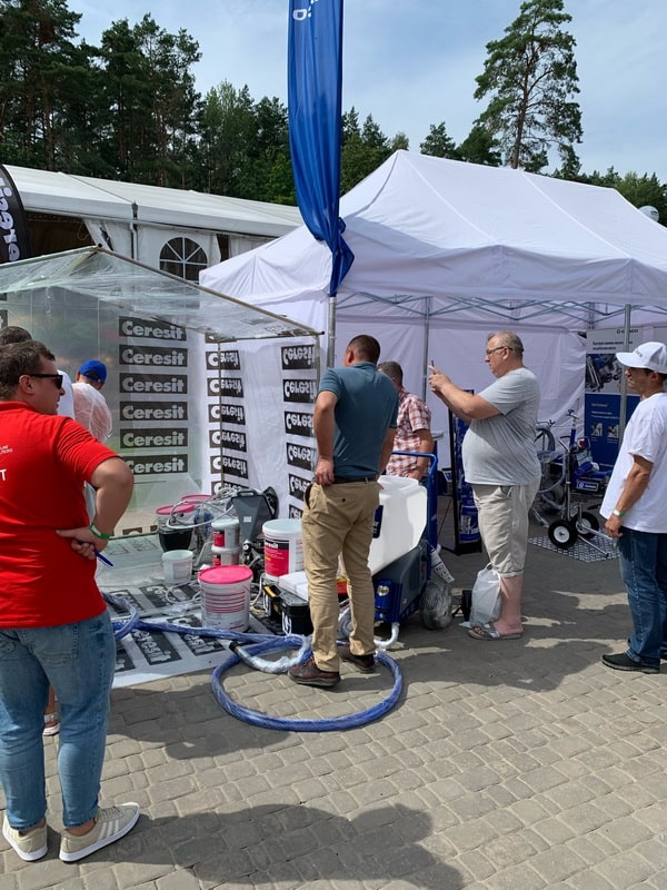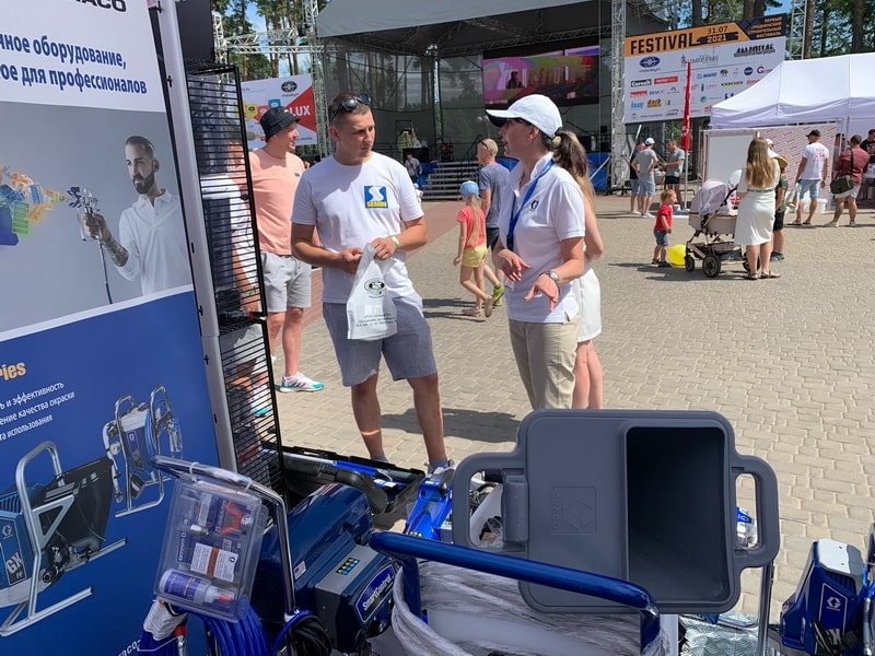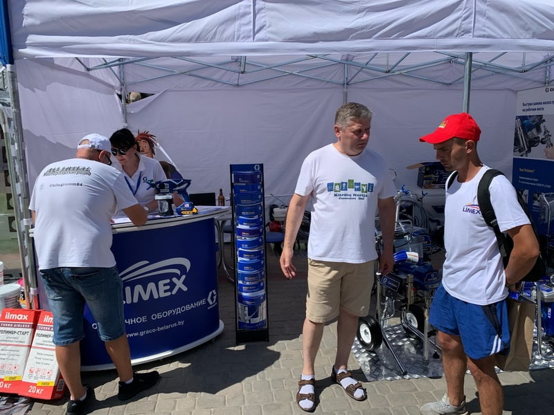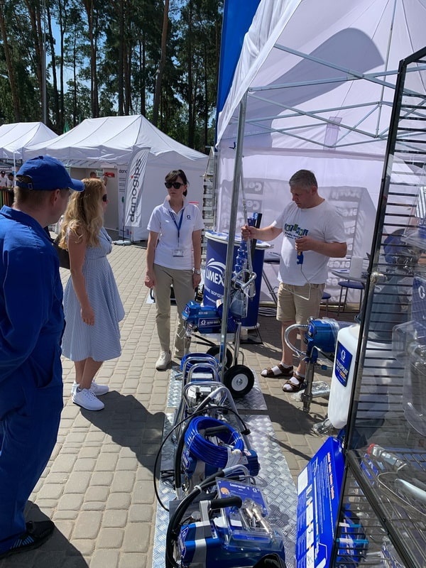 В окрасочной камере каждый желающий получил консультацию по распылению и работе на безвоздушных агрегатах Mark X., RTX 2500., хоппере. Было много общения, акций, улыбок.
