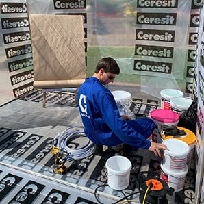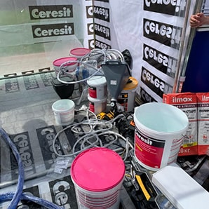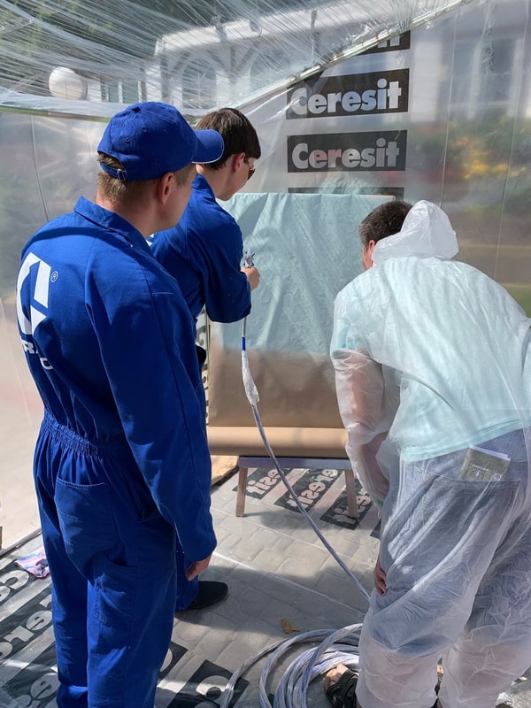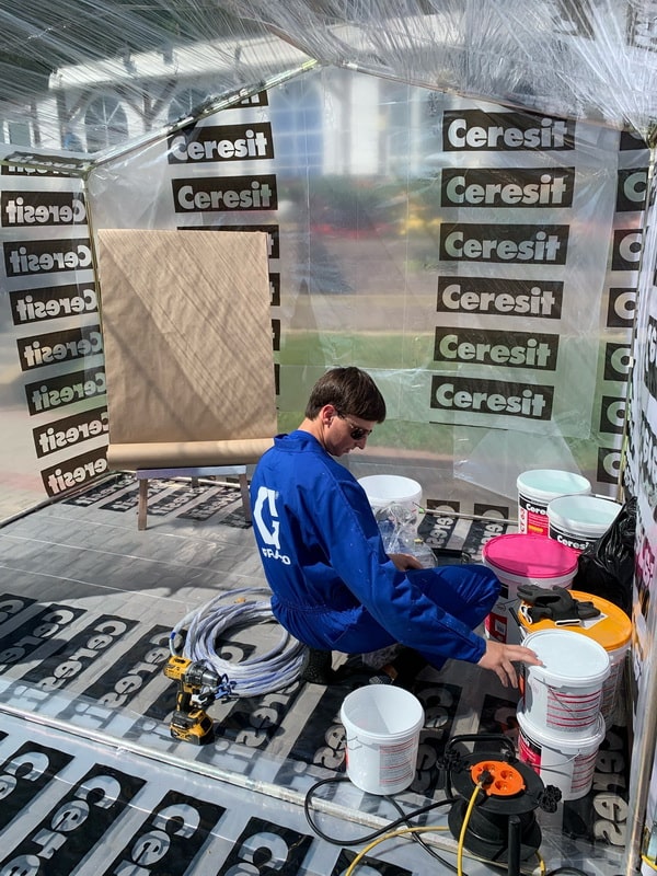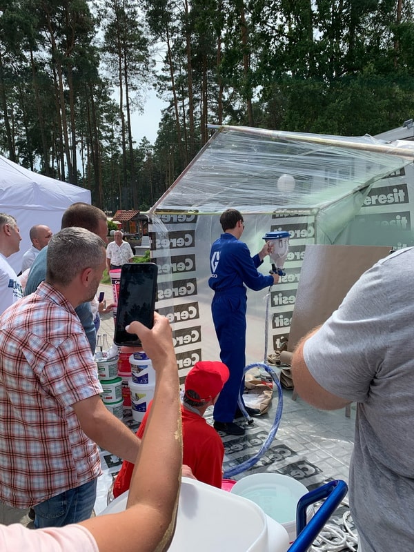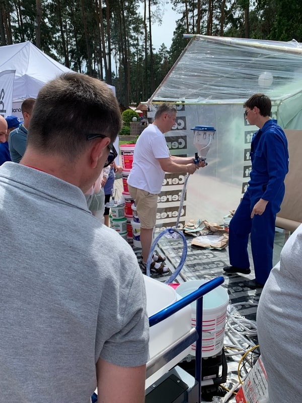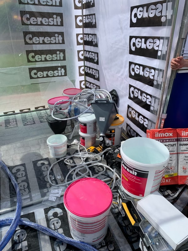 Встреча и работа на одной площадке с нашими партнёрами компаниями: Ceresit., ilmax., danogips., MAV., ЛРСП-17. Интересные проекты по необычным распылениям.