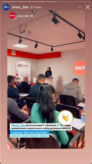 ООО "Лимэкс" г. Лида (Беларусь), совместно с компанией MAV г. Дзержинск (Беларусь), проводил мероприятие 29 - 30 января 2025 г. с Заводами России, по нанесению лакокрасочной продукции по металлу, безвоздушным способ распыления! Благодарим всех, кто посетил данное мероприятие! Ваш опыт и наши знания, ведут к успеху. Ваш успех - Наш успех!