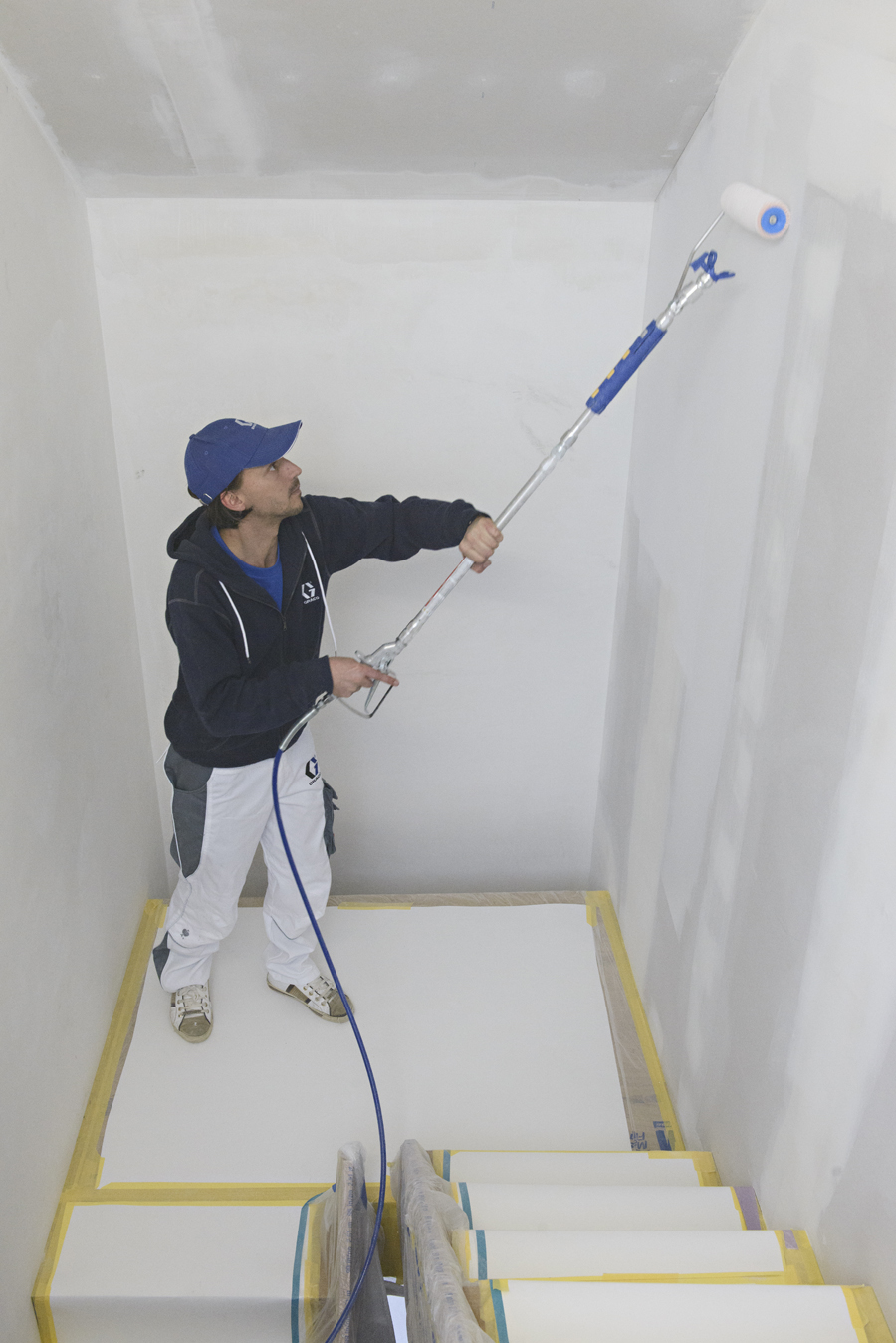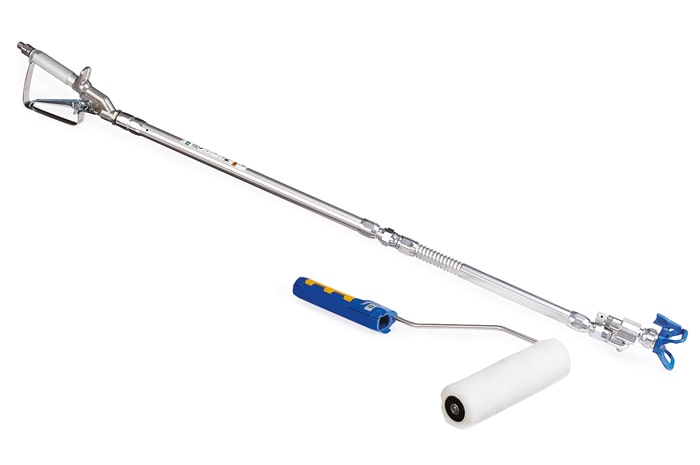 Забудьте о беготне вверх и вниз по лестницам или лесам. Забудьте про избыточное напыление, поскольку наконечник для распыления находится слишком далеко от поверхности, теряя краску.