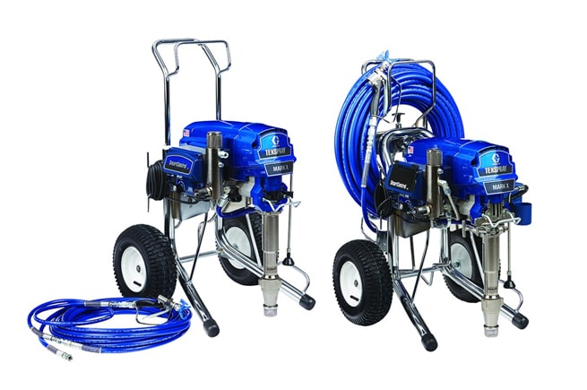 TexSpray Mark X 240 В является нашим самым эффективным безвоздушным электрическим устройством для текстурированных покрытий. Обладая почти вдвое большей выходной производительностью по сравнению с устройством Mark V, этот распылитель является предпочтительным выбором для серьезных профессиональных подрядчиков, которые могут удобно использовать источник питания мощностью 240 В, имеющийся на строительном объекте, или питание от генератора. Это действительно мощное устройство, которое может легко распылять накрывочный слой штукатурки в режиме отделки уровня 5 и массу для гипсокартонных покрытий с текстурой апельсиновой корки, текстурой разбрызгивания или с продавленной текстурой. Оно даже может осуществлять нанесение любых грунтовок и красок.