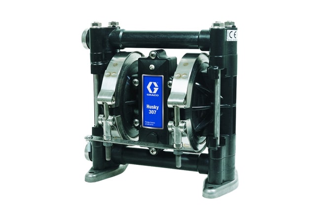 Двухмембранный насос Husky 307 работает при низком давлении 0,14 МПа (1,4 бар, 20 фунтов на кв. дюйм) и доступен в исполнении из заземляемой ацетали и полипропилена.