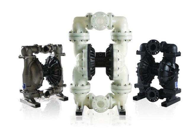 - Вся серия мембранных насосов 76,2 мм доступна с центральными секциями из алюминия или полипропилена