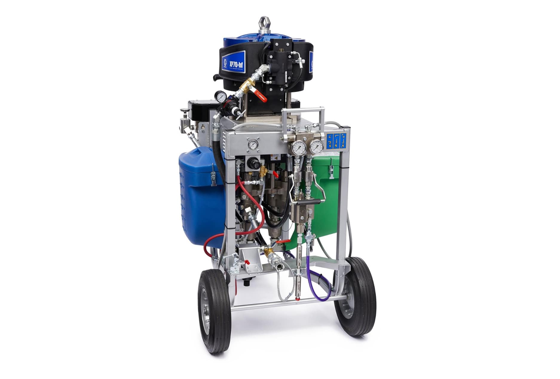 Включает | Пневматический двигатель, Насосные блоки, Тележка, Распылительный пистолет, Шланг подачи, Бункер, Насос для растворителя, HF для размещения во взрывоопасных местах, нагреватели A/B |