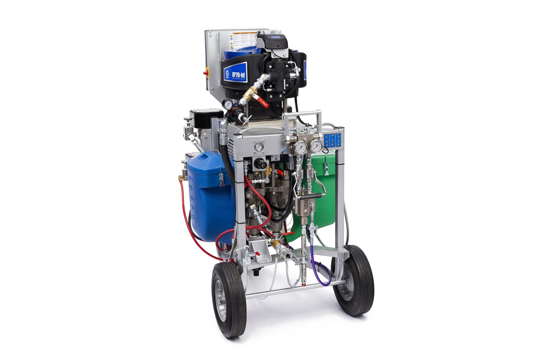 Включает | Пневматический двигатель, Насосные блоки, Тележка, Распылительный пистолет, Шланг подачи, Бункер, Насос для растворителя, HF для размещения во взрывобезопасных зонах, нагреватели A/B, распределительная коробка проводки, нагреватель для циркуляционного насоса ВД для размещения во взрывобезопасных местах, циркуляционный насос с подогревом шлангов, Pressure Trak |