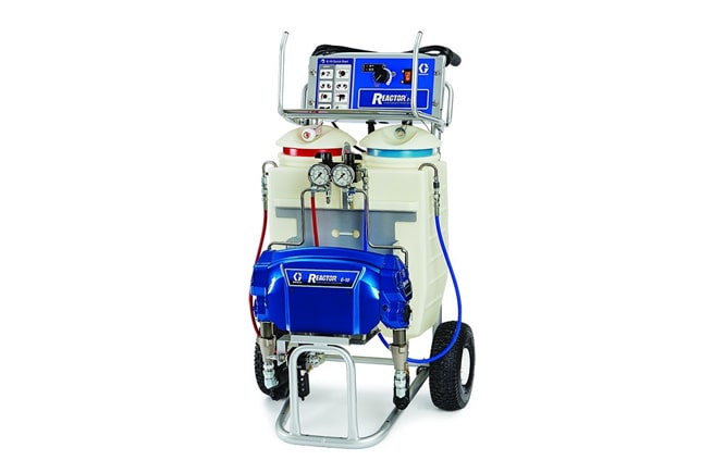 Неотапливаемый реактор E-10 для напольных покрытий оснащен бортовыми резервуарами, что упрощает точное смешивание материалов с более высокой вязкостью.